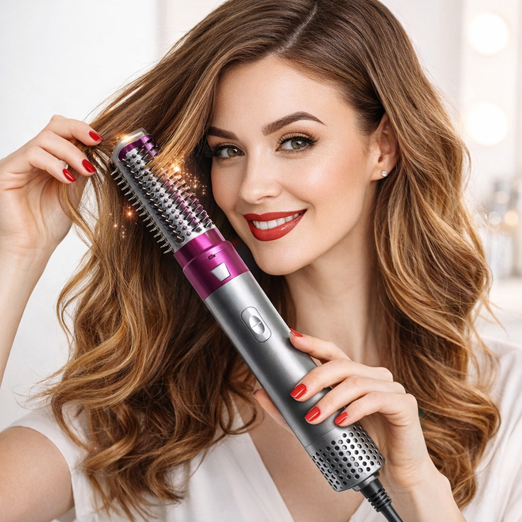 El cepillo 5 en 1 es la herramienta perfecta para cuidar y peinar tu cabello de forma rápida y sencilla. Su diseño multifuncional te permite secar, alisar, rizar, desenredar y dar volumen con un solo dispositivo, logrando resultados profesionales desde casa.